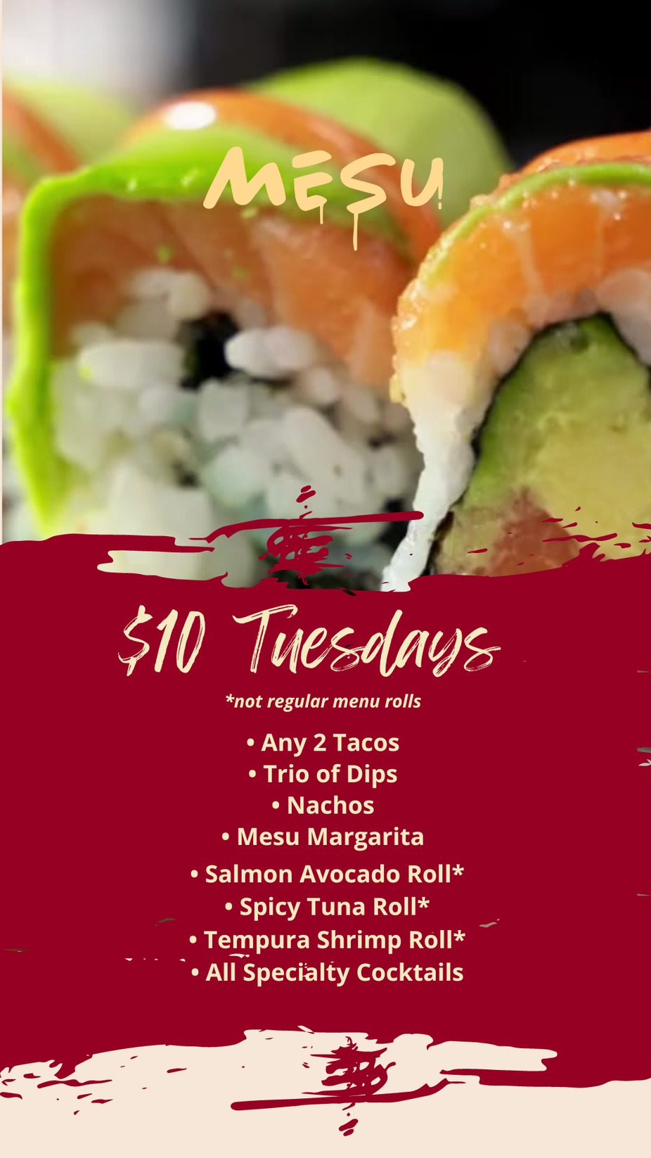 Pair your sake with fresh sushi, vibrant rolls, and the lively atmosphere MESU is known for. Whether you’re starting the night or winding it down, Sake Sundays are the perfect way to enjoy great drinks, food, and friends.